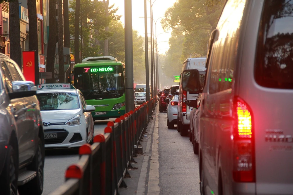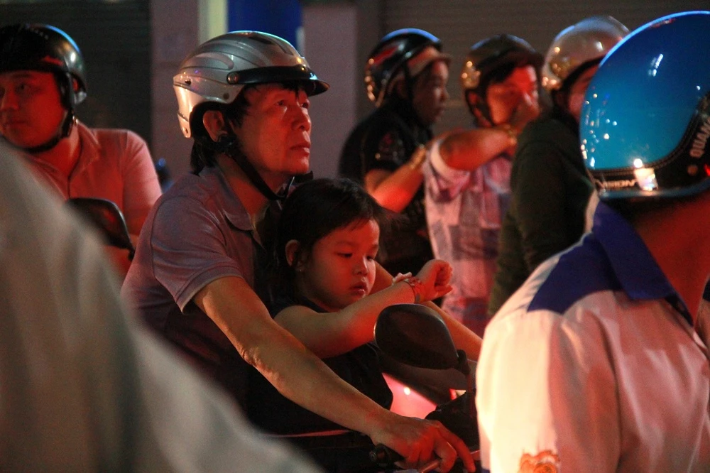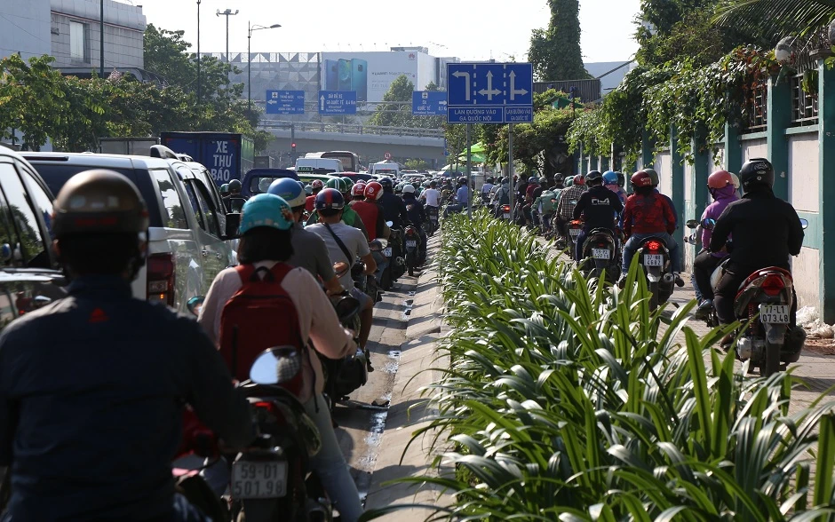 Khoảng một giờ sau, tuyến đường này đã kẹt cứng, các phương tiện di chuyển khó khăn. Nhiều xe máy phải lấn vào làn ôtô để di chuyển.