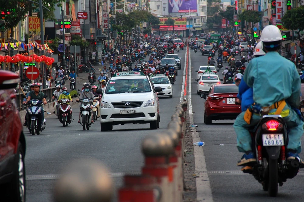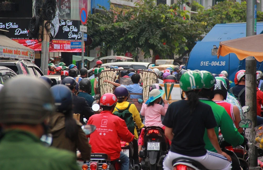 TP.HCM những ngày cận Tết Kỷ Hợi, ở các tuyến đường từ nhỏ tới lớn, từ trung tâm tới cả ngoại thành đều đông đúc, nhộn nhịp bởi nhu cầu đi lại để sắm sửa đồ Tết, đi thăm hỏi, về quê, ship hàng hóa... của người dân tăng cao. Nhiều tuyến đường TP.HCM luôn trong tình trạng ùn ứ, hỗn loạn hết ngày tới đêm.