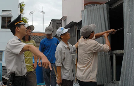 Cưỡng chế thi hành án một phần căn nhà tại TP.HCM. Ảnh: HTD
