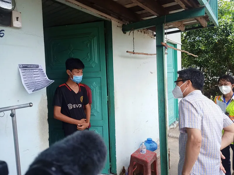 Phó Thủ tướng đã đến thăm một số khu trọ tại xã Vĩnh Lộc B và thị trấn Tân Túc. Tại những khu trọ, ông Vũ Đức Đam đã thăm hỏi, chia sẻ với những khó khăn, vất vả, thiếu thốn của nhiều hộ gia đình đã nghỉ việc, không có nguồn thu nhập nhiều tháng qua.