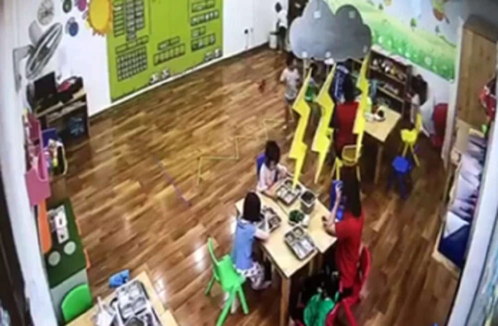 Nhận thấy sự bất thường, chị L. đến làm việc với nhà trường, đề nghị xem camera của lớp học nhưng bị từ chối. Sau nhiều lần cương quyết, phía nhà trường mới cung cấp cho gia đình chị L. đoạn clip trích xuất từ camera lớp học vào ngày 5-8.