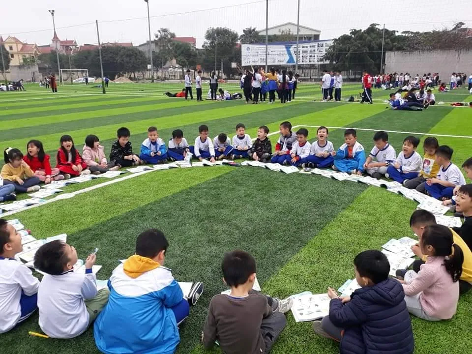 Học sinh học môn Tiếng Việt, bộ sách Cánh Diều được trải nghiệm tiết học ngoài trời.