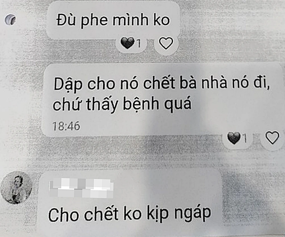 Sau tin nhắn thông báo trên, cô giáo M. và cô H. đều là giáo viên Văn trong Tổ đã nhắn tin với những lời lẽ, nội dung vô cùng phản cảm mà trước khi có đơn, cô T. đã chụp lại làm bằng chứng: “Dập cho nó chết bà nhà đó đi, chứ thấy bệnh quá”; “Cho chết không kịp ngáp”...