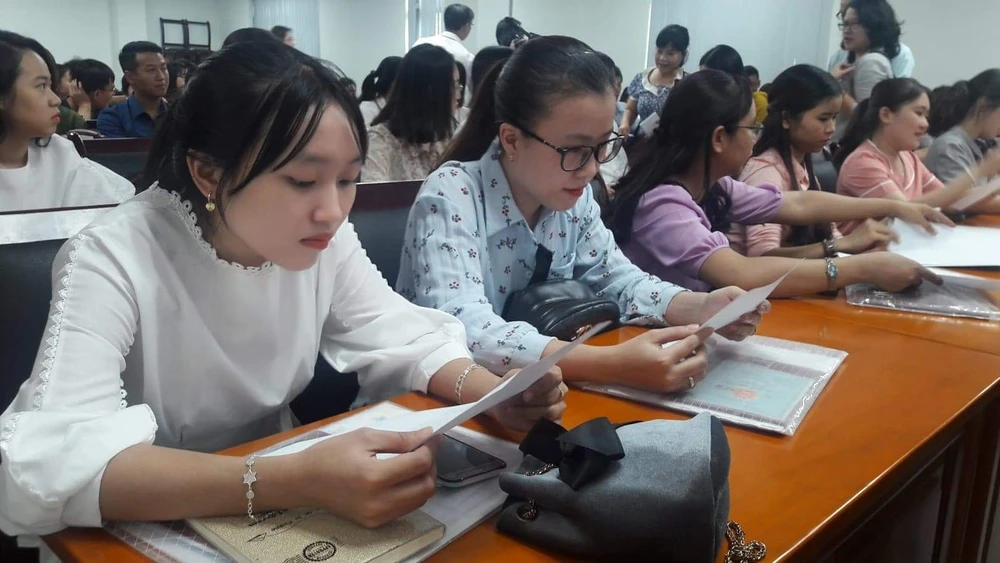 Các giáo viên vừa trúng tuyển kỳ thi tuyển giáo viên của Sở GD&ĐT TP Đà Nẵng sẽ được tự lựa chọn trường để dạy. Ảnh: TT