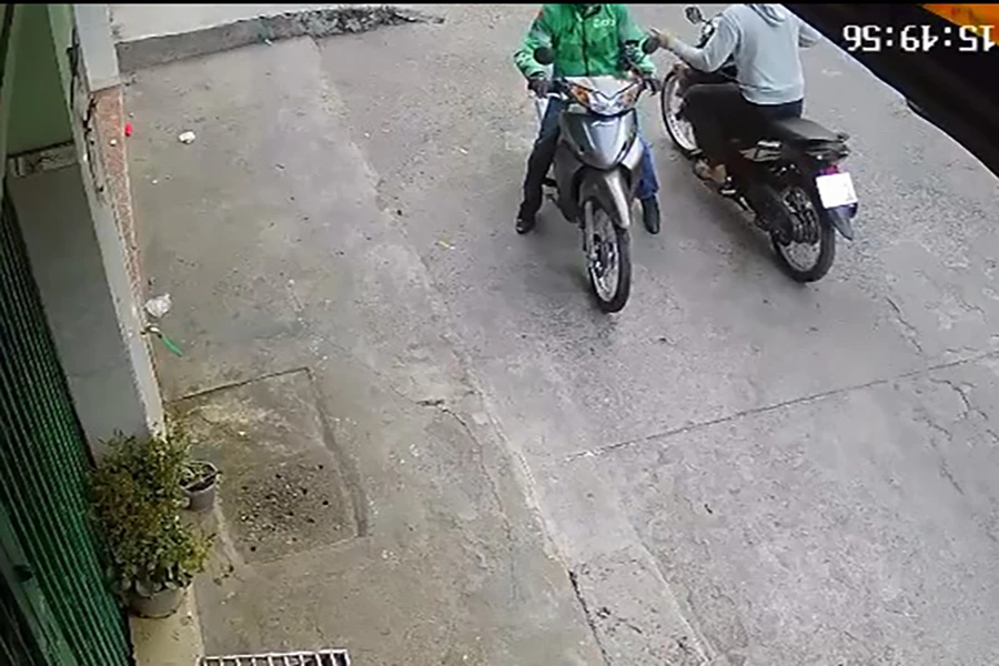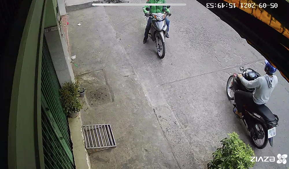 Clip ghi lại được biển số xe của tên cướp giật. Ảnh cắt từ clip