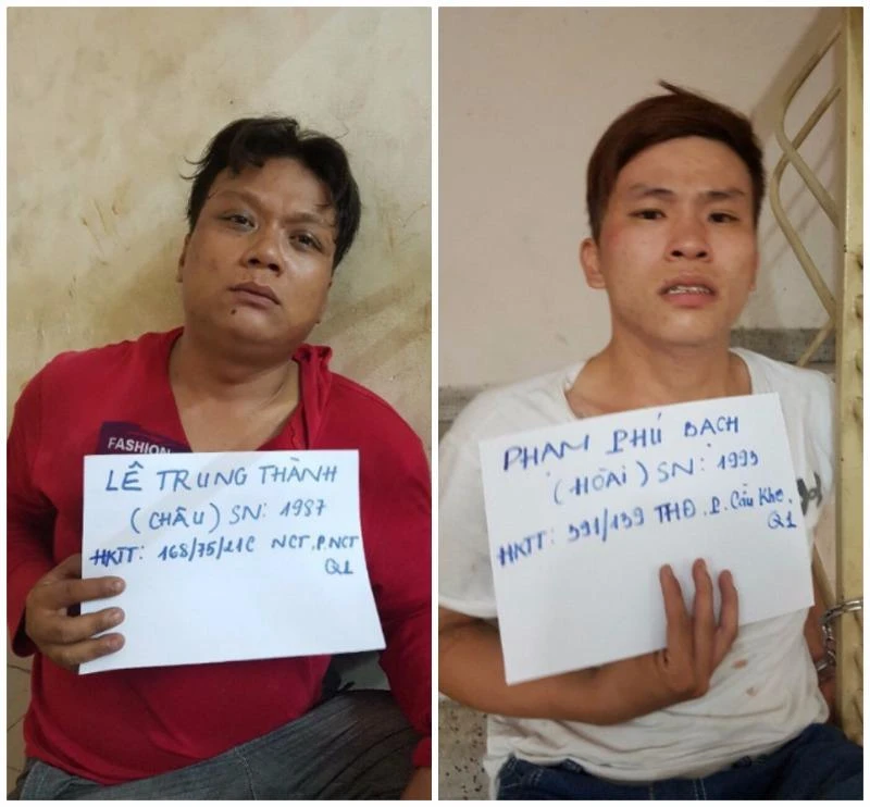 Chiều 25-7, Đội Cảnh sát hình sự đặc nhiệm hướng Nam (Phòng Cảnh sát hình sự, Công an TP.HCM) cho biết trinh sát của đội đã bàn giao Lê Trung Thành (30 tuổi) và Phạm Phú Bạch (24 tuổi, cùng ở quận 1) cho Công an quận 1 để tiếp tục điều tra về hành vi cướp giật tài sản.
