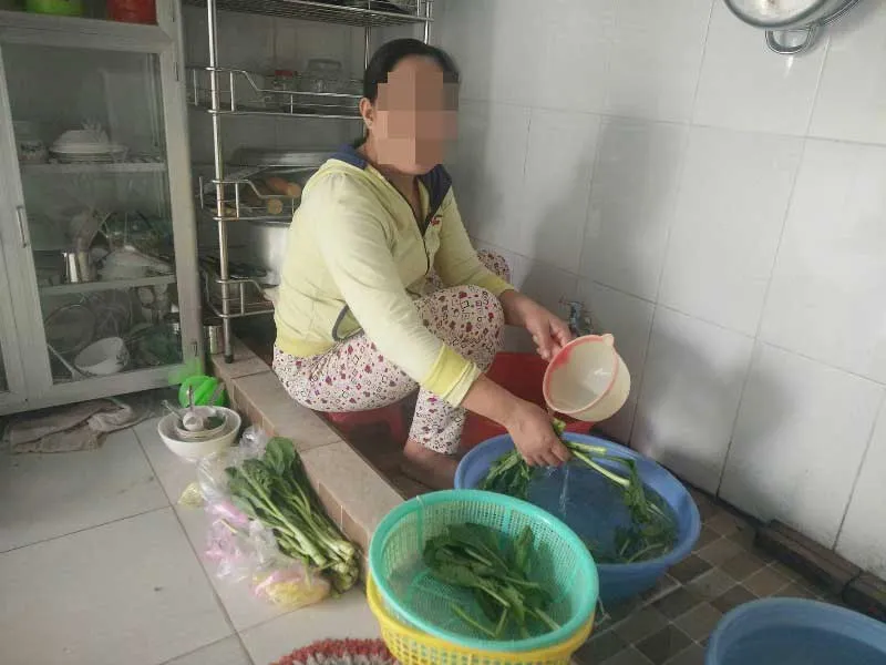 Bà Linh, vợ ông Hùng, phải xài thật tiết kiệm nước sau khi nhìn hóa đơn tiền nước sinh hoạt tháng 4 lên đến bạc triệu. Ảnh: ĐÀO TRANG