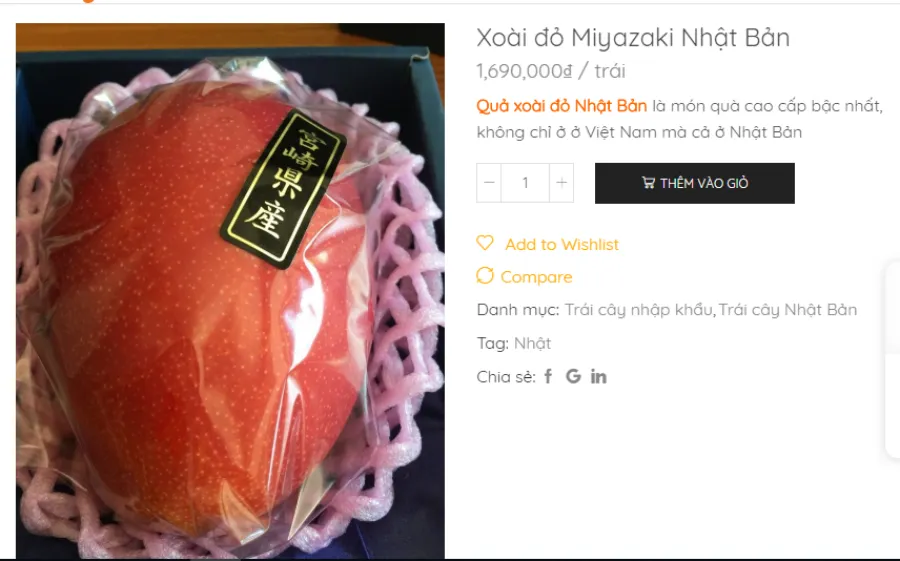 Mặc dù mới vào đầu mùa, nhưng trên mạng xã hội, và các cửa hàng trái cây nhập khẩu, xoài đỏ Miyazaki của Nhật bản được rao bán rầm rộ với giá 1,2- 1,7 triệu đồng/ quả tùy địa điểm bán.