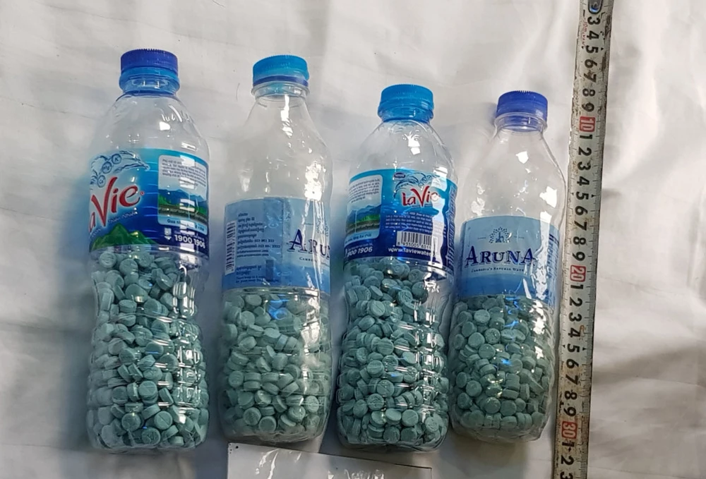 Trước đó, trinh sát ma túy Công an quận Bình Tân ập vào khách sạn trên đường Mã Lò (phường Bình Trị Đông A, quận Bình Tân), phát hiện Kouch Pheng Leng mang theo chai nhựa chứa 1.913 viên nén hình tròn màu xanh, trên bề mặt có khắc chữ LV.