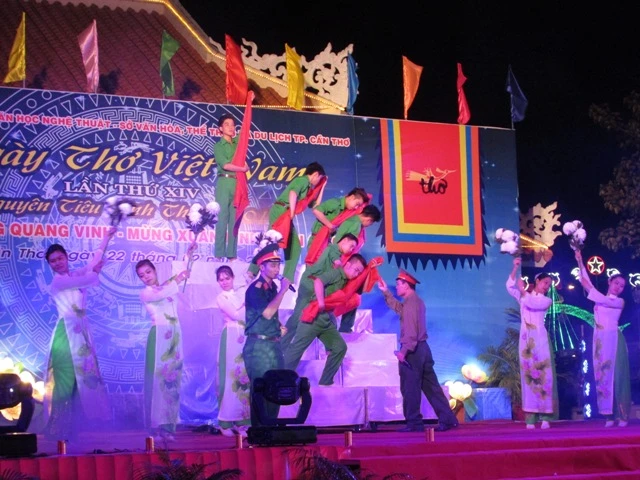 Hoạt cảnh diễn ngâm bài thơ "Tổ quốc chúng tôi đây" gây nhiều xúc động cho khán giả. Ảnh: N.NAM
