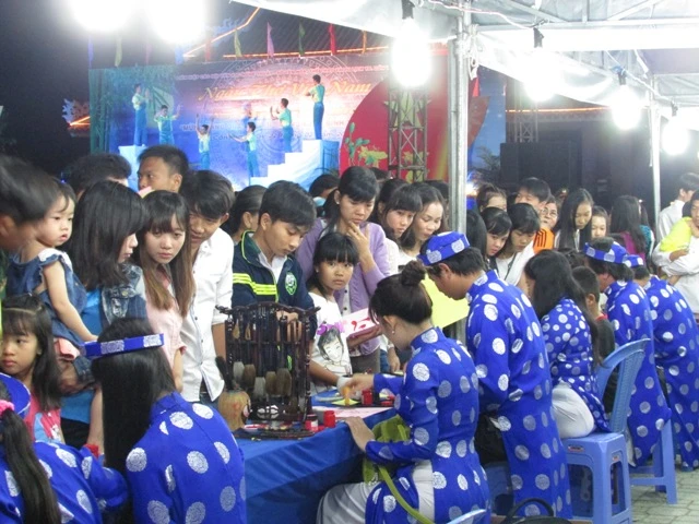 Cùng với đêm thơ, nhiều người dân, đặc biệt là các bạn trẻ, thanh thiếu niên rất thích xin chữ thư pháp do các ông, bà đồ viết tặng. Các bạn xin các chữ như “Hiếu”, “Nghĩa”, “Nhân”, “Tâm”, “Hạnh Phúc”, “Gia Đình”… hoặc xin viết tặng chính tên của mình. Gian hàng ấn phẩm xuân và truyện tranh thiếu nhi cũng có nhiều độc giả trẻ ghé thăm…