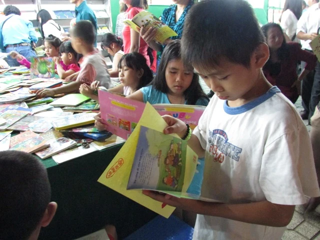 Ở một gian hàng khác của Đêm Thơ, các bạn nhỏ chăm chú với những cuốn truyện tranh hấp dẫn. Ảnh: N.NAM
