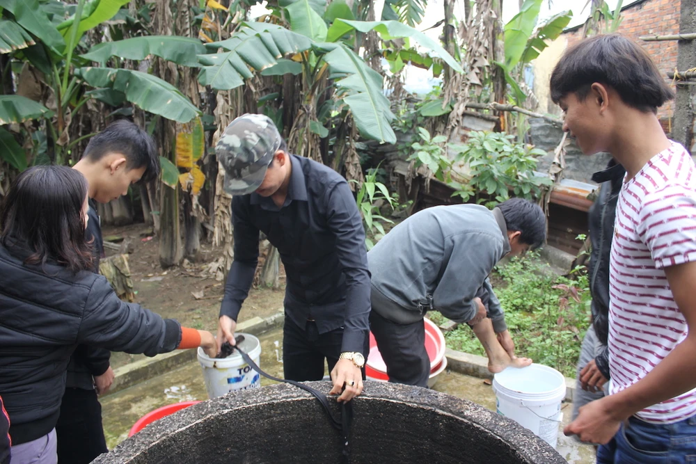 “Từ khi nước trong giếng nóng lên tôi không dám lấy nước để nấu ăn, phải qua nhà hàng xóm để xin nước về dùng. Nước này chủ yếu là tắm rửa trong gia đình. Mấy ngày gần đây trời lạnh nên mọi người quanh xóm đến xin nước về tắm” - bà Liên cho hay.