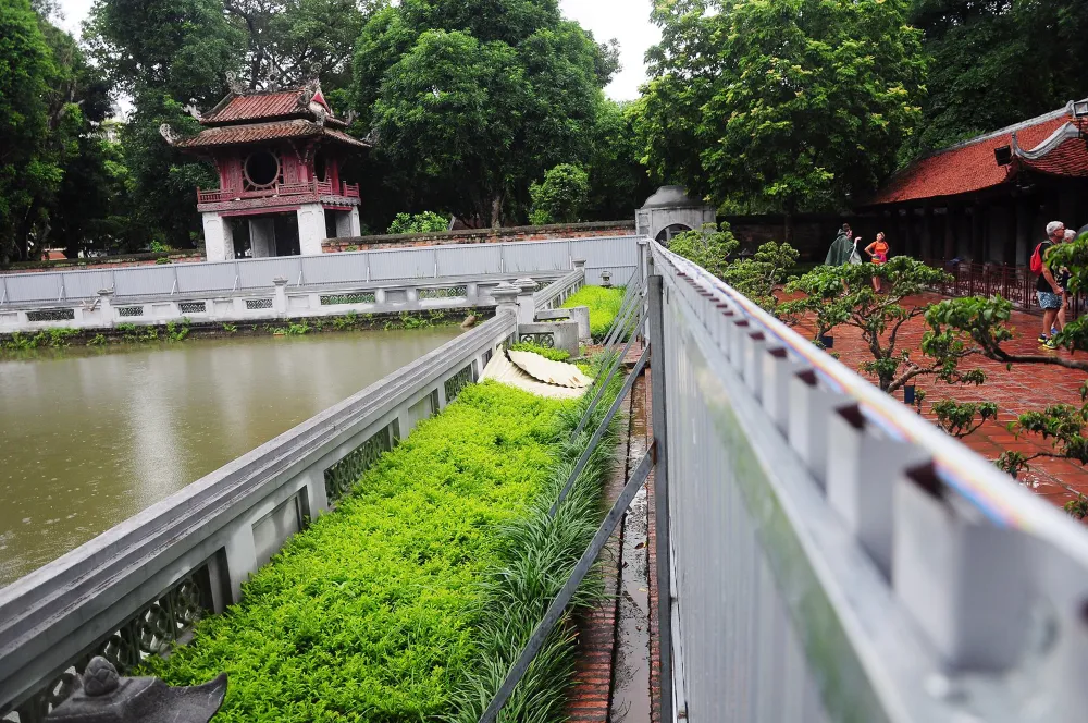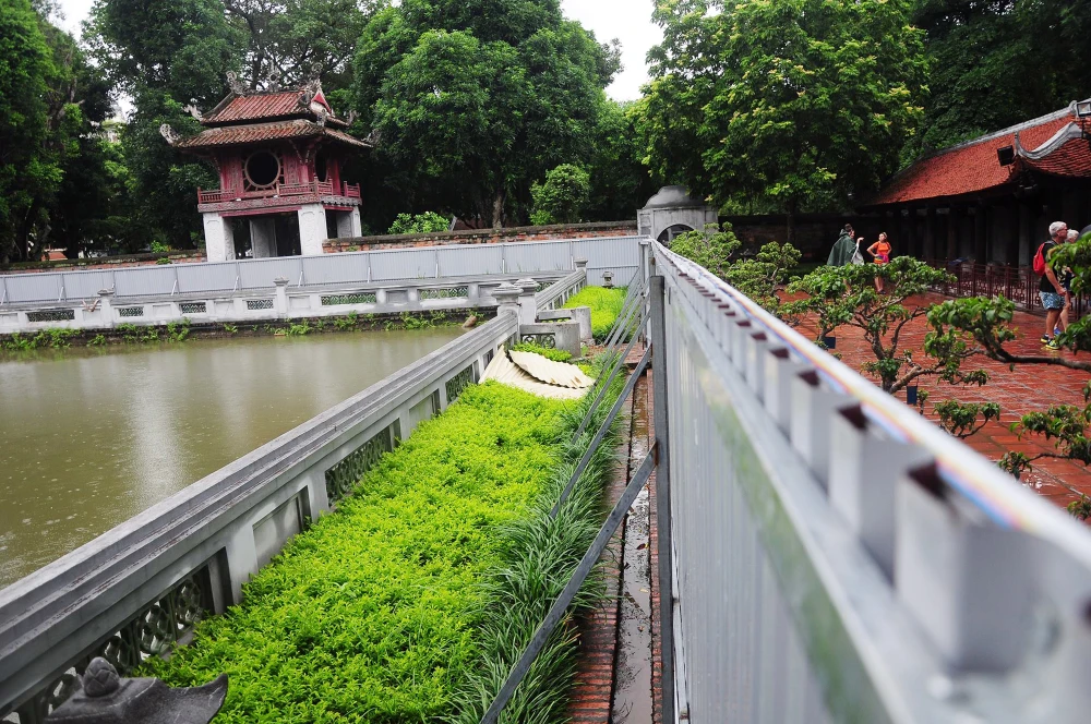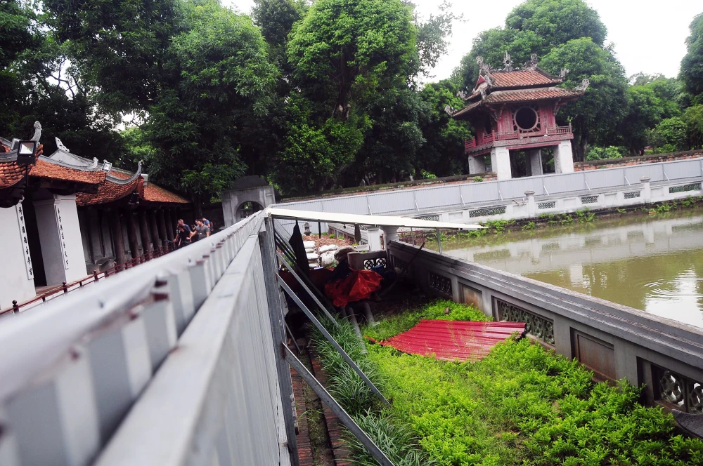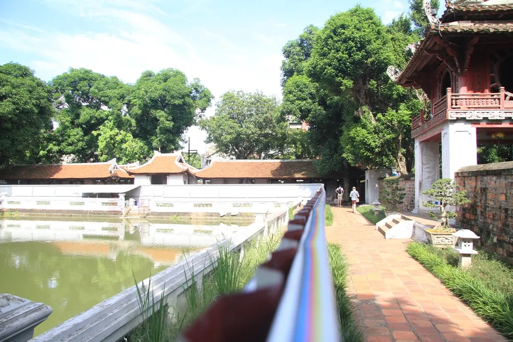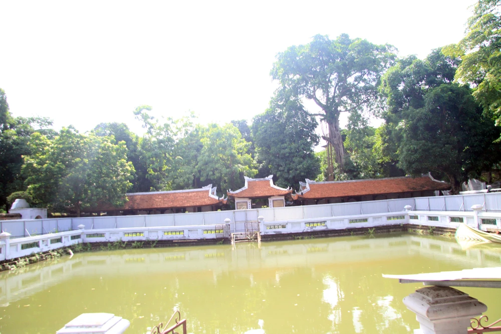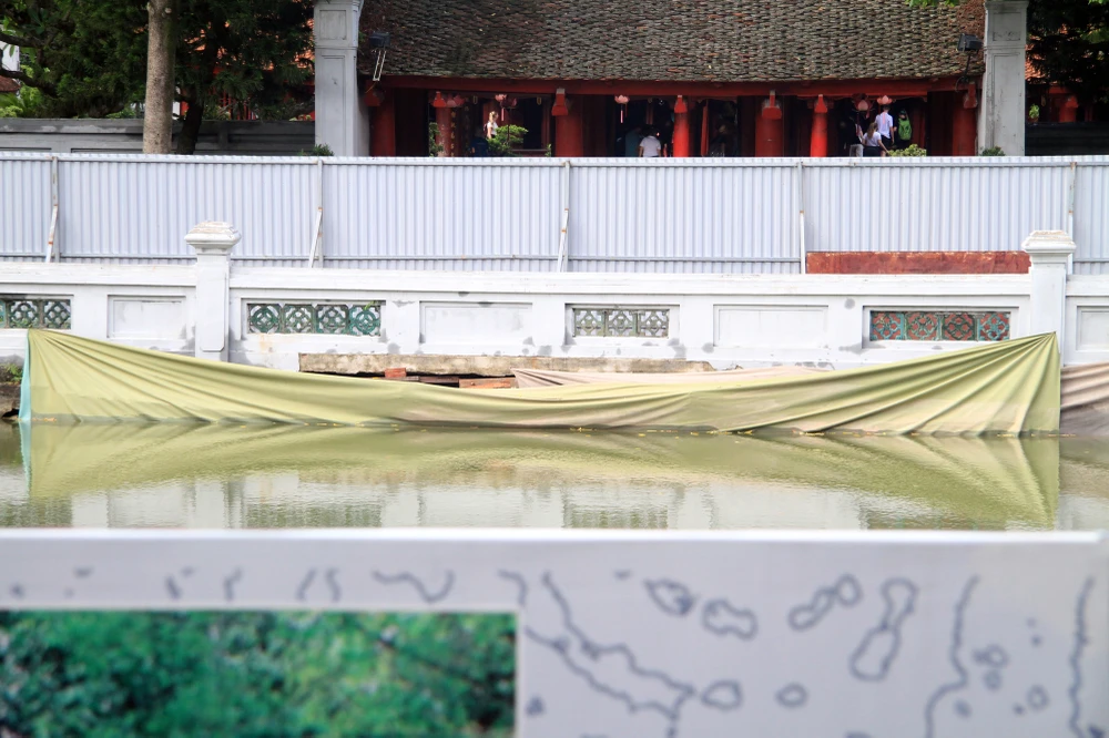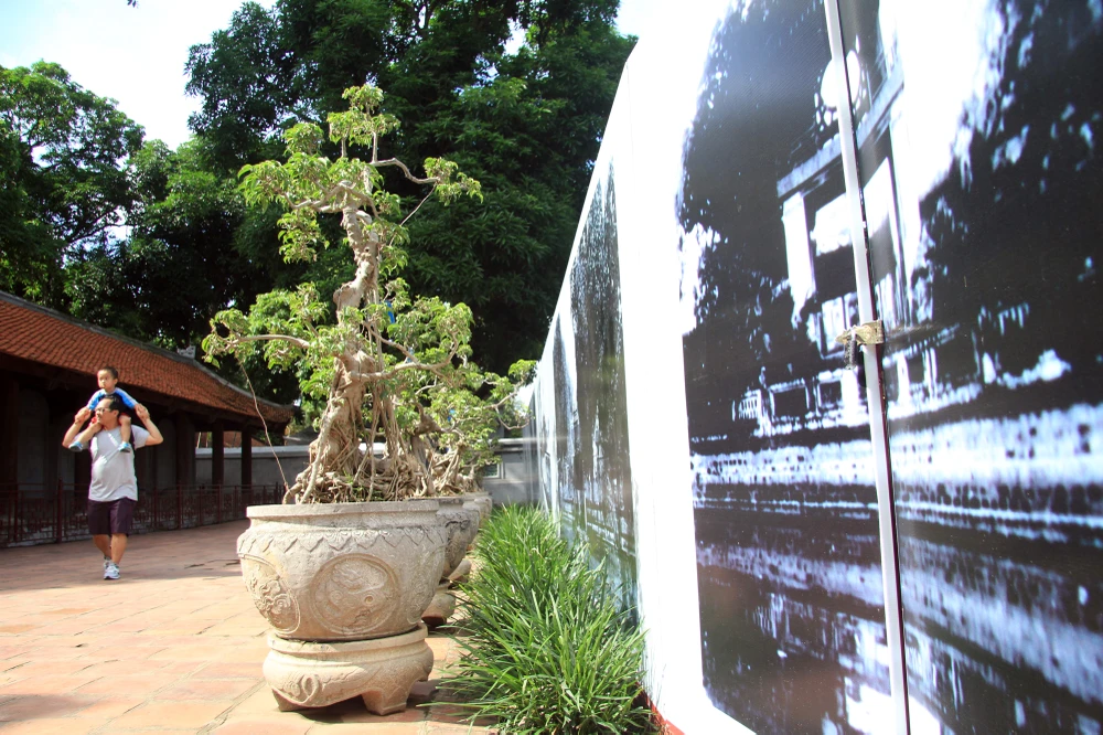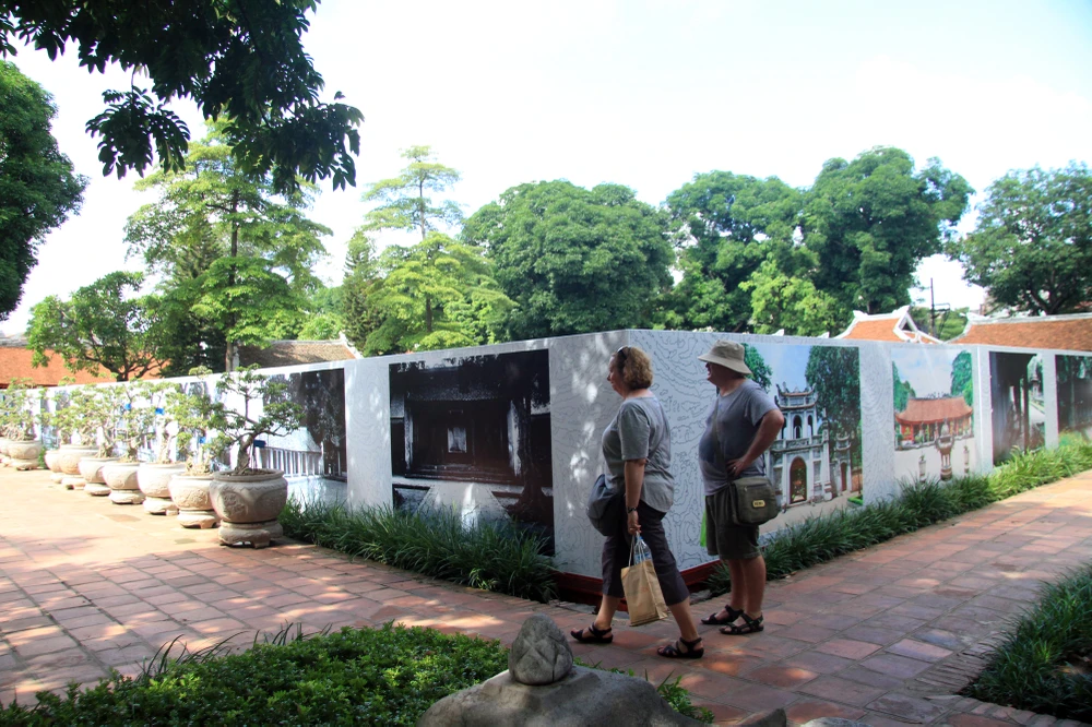 Phía bên ngoài trang trí bởi các hình ảnh, tư liệu về khu di tích Văn Miếu - Quốc Tử Giám.