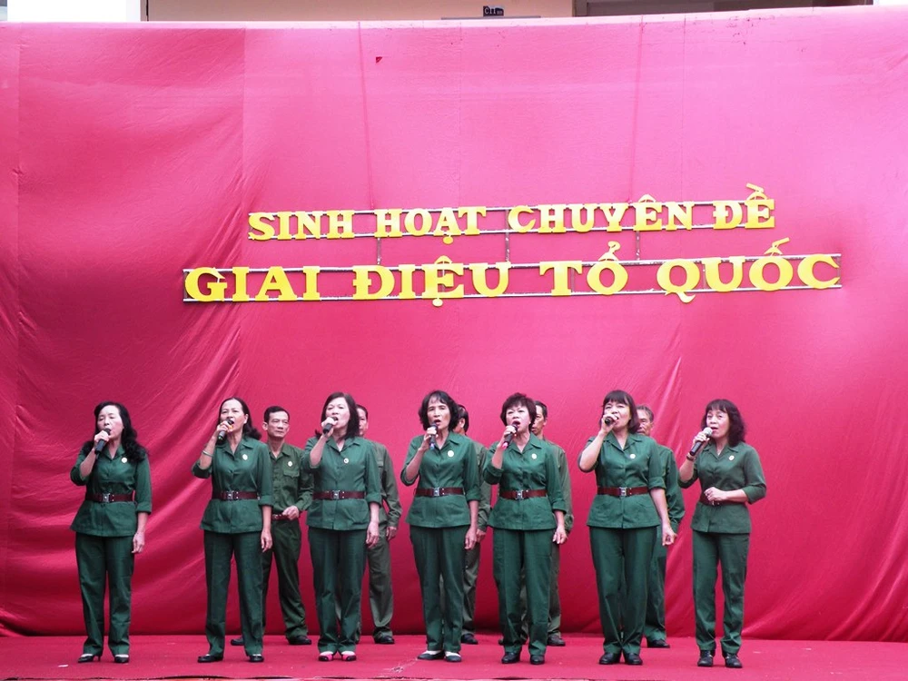 Các cô chú trong Hội Cựu chiến binh phường Đa Kao, quận 1 biểu diễn các tiết mục văn nghệ tại buổi sinh hoạt.