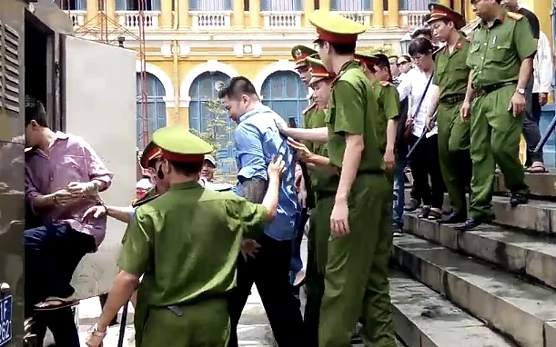 Bị cáo Phương (áo xanh) được công an áp giải lên xe về trại giam
