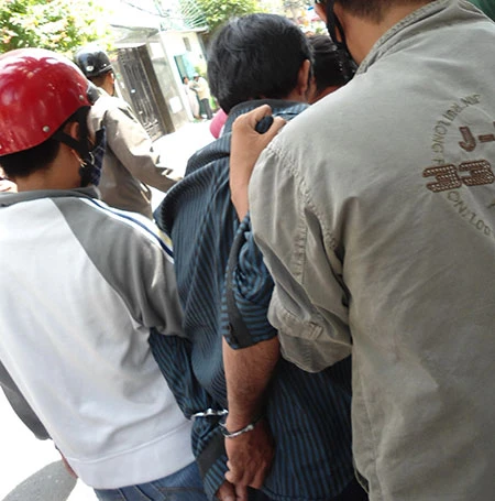 Nghi can Vắn Cống Bảo được di lý về Công an huyện Bình Chánh, TP.HCM để phục vụ điều tra. Ảnh: CTV