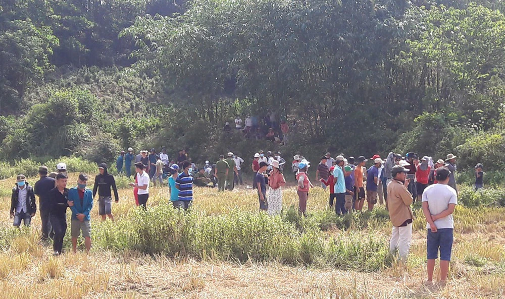 Sự việc gây rúng động vùng quê vốn yên bình. Hàng trăm người dân tập trung theo dõi công tác khám nghiệm, điều tra.