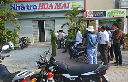 Cơ quan công an điều tra hiện trường vụ án mạng tại nhà trọ Hoa Mai. Ảnh: LT