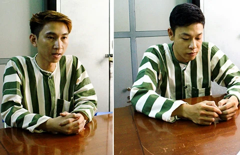 Hai nghi can Tài và Nhân tại cơ quan điều tra. Ảnh: CTV