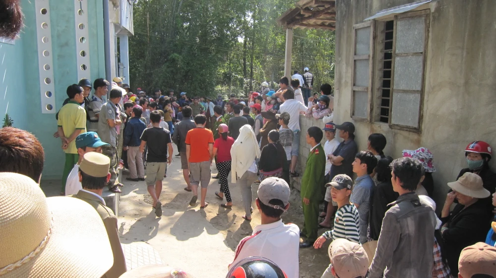 Người dân tập trung trước nơi xảy ra án mạng. Ảnh: VIẾT LONG
