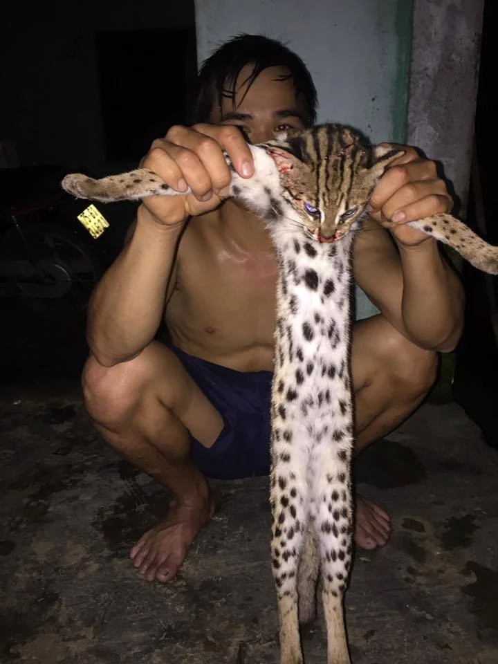 Thanh niên đăng Facebook về cảnh giết thịt mèo rừng.