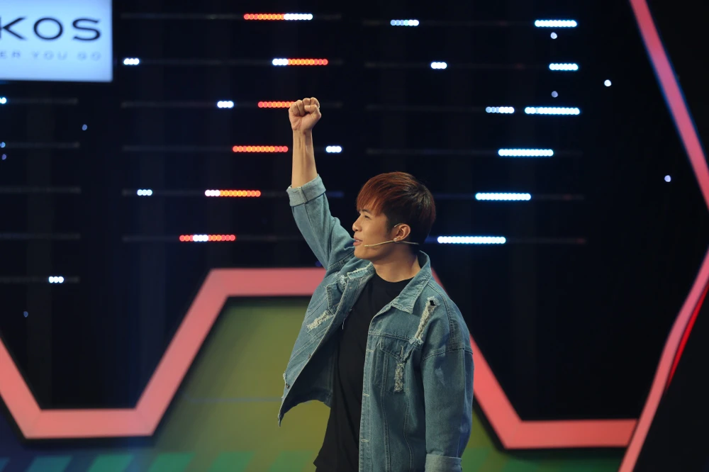 Gin Tuấn Kiệt đau đầu với những câu hỏi "hack não" của chương trình đưa ra. Ảnh: BEE