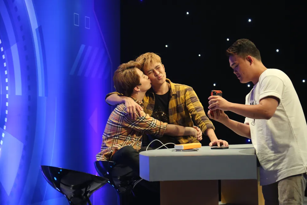 cả hai thể hiện tình cảm có phần ướt át trong chương trình, Ngô Kiến Huy rùng mình: "Thấy ghê quá, nổi da gà hết trơn rồi nè". Dứt lời, nam MC liền đuổi Duy Khánh vào Căn phòng thử thách.