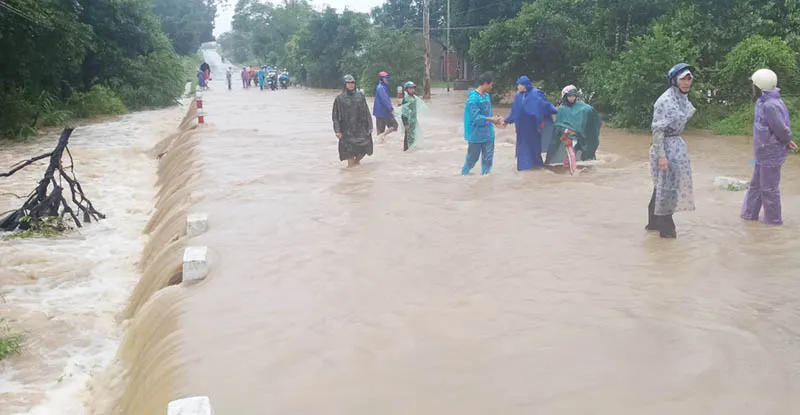 Lũ gây ngập quốc lộ 29 đoạn qua huyện Sông Hinh. Ảnh: ĐINH NGỌC DẠN