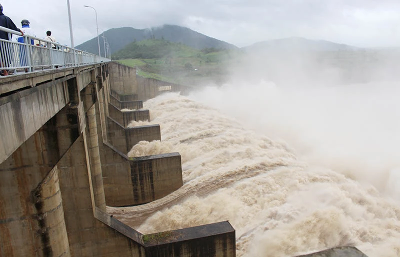 Thủy điện Sông Ba Hạ xả lũ. Ảnh: TẤN LỘC
