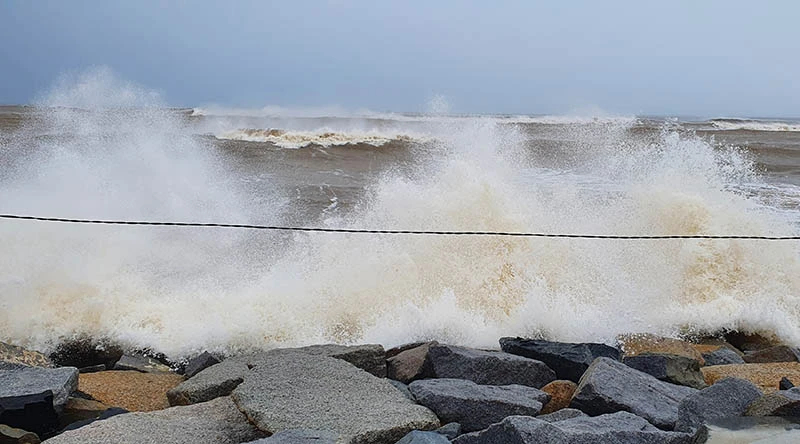 Sóng biển dâng cao, đánh dữ dội vào các vùng ven bờ ở thị xã Đông Hòa. Ảnh: TẤN LỘC