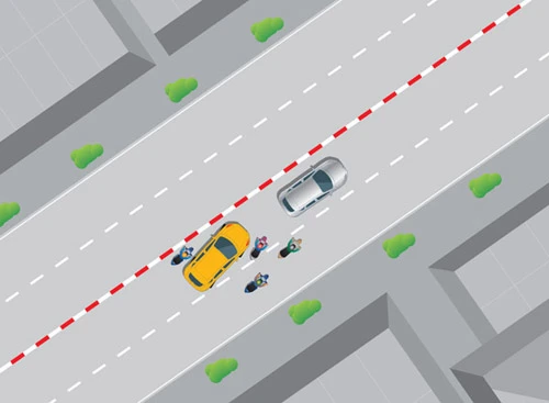 Chỉ cần tránh một xe nào đó bên phải, bạn sẽ vô tình biến mình thành gọng kìm chèn xe máy đang đi bên trái vào dải phân cách. Dòng ôtô nối đuôi nhau gần sát vào dải phân cách cứng còn đồng nghĩa với việc dành không gian nhiều hơn cho các xe khác đi phía bên phải.