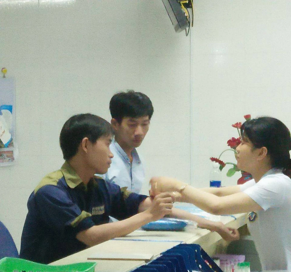 Công nhân hiến máu để cứu hai bệnh nhân ở BV đa khoa Trung ương Quảng Nam. Ảnh: CTV