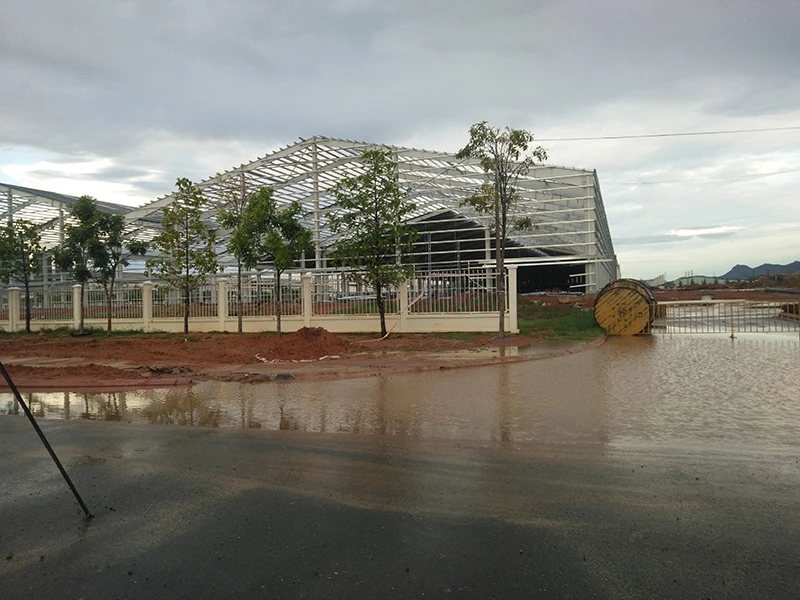 Cụ thể, vào lúc 15 giờ ngày 6-9, tại nhà xưởng đang thi công đến giai đoạn bắt các cây ty cố định khoảng cách xà gồ để lợp mái thì có gió lớn.