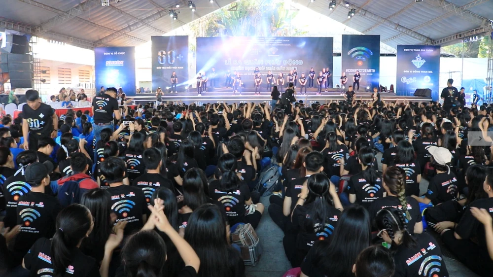 Điểm nhấn trong buổi lễ ra quân sáng 10-3 là đồng loạt 2.000 tình nguyện viên đổi hình đại diện, ảnh "cover" của Facebook cá nhân theo sự kiện đã đăng ký trên website Giờ Trái đất và cùng hòa nhịp trong bài nhảy flashmob Nối vòng tay lớn.