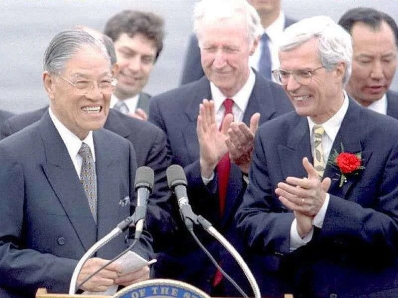 Giới chức New York (Mỹ) chào đón ông Lý Đăng Huy (trái) sang thăm trường cũ - sự kiện khơi mào khủng hoảng eo biển Đài Loan năm 1996. Ảnh: AFP