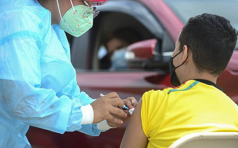 Một cậu bé được tiêm vaccine của Pfizer / BioNTech ở Tegucigalpa, Honduras. Ảnh: AFP