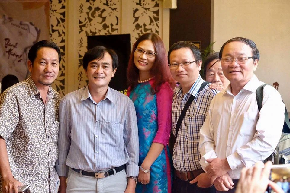 Các nhà văn, nhà thơ TP.HCM đến chung vui cùng tác giả Thinh hương. Từ trái qua: nhạc sĩ Nguyễn Cửu Dũng, Phan Hoàng, Phương Huyền, Trần Nhã Thụy, Vũ Quỳnh.