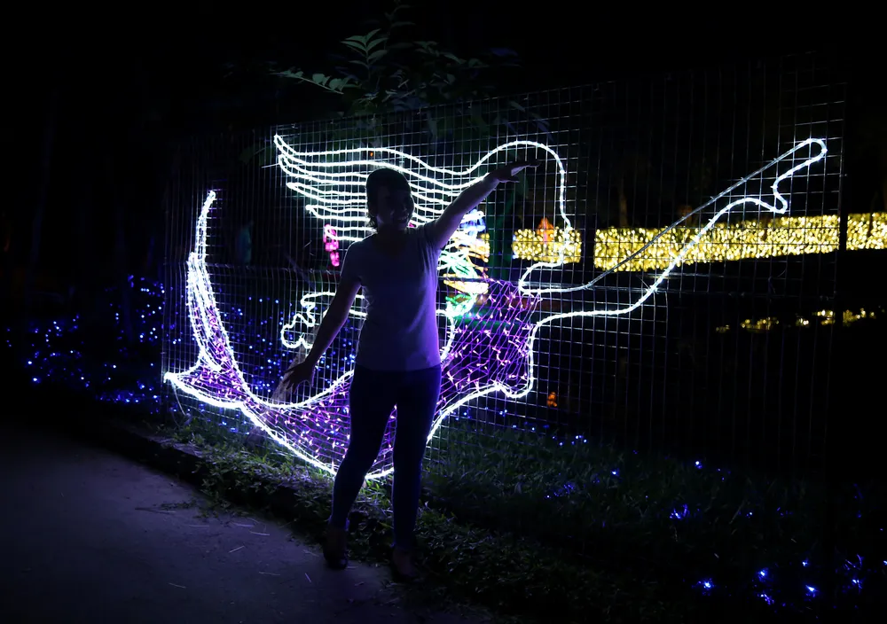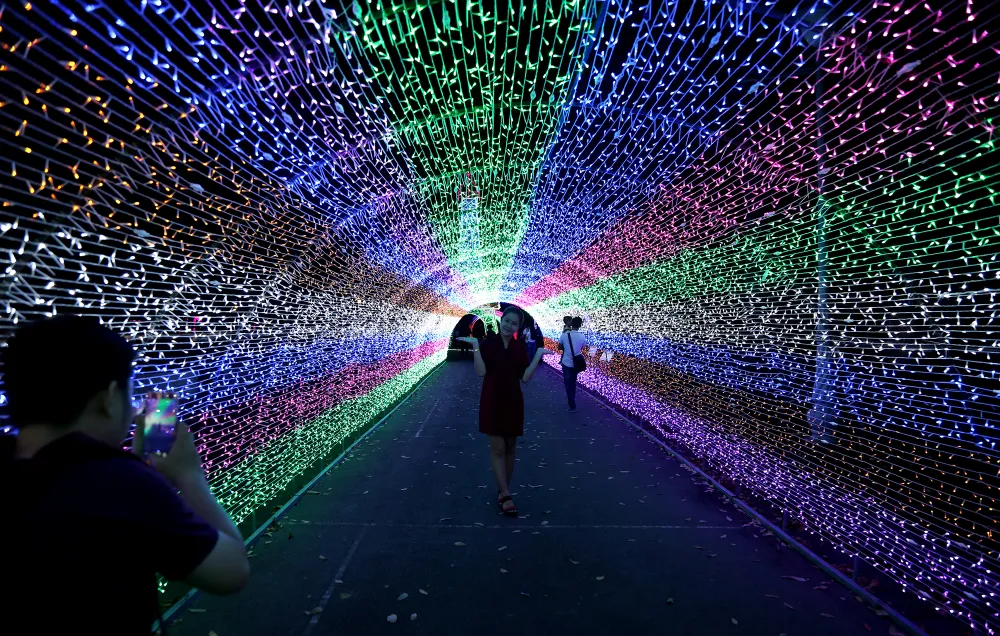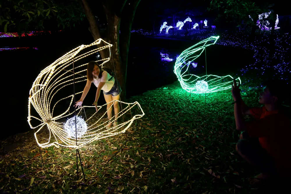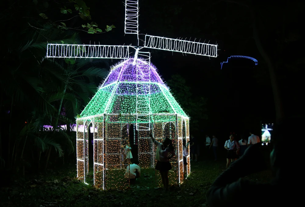 Không gian rộng lớn của Thảo Cầm Viên sáng rực lên trong đêm bởi hàng triệu bóng đèn LED đủ màu sắc, được cài đặt hiệu ứng lung linh biến đổi cực bắt mắt.