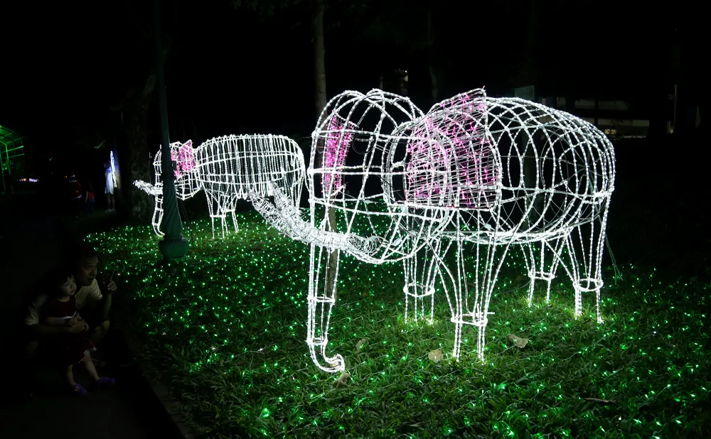 Những chú voi tạo hình bằng hiệu ứng đèn LED.