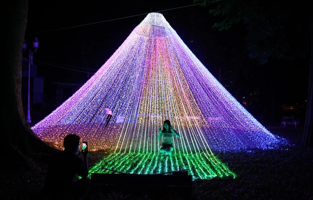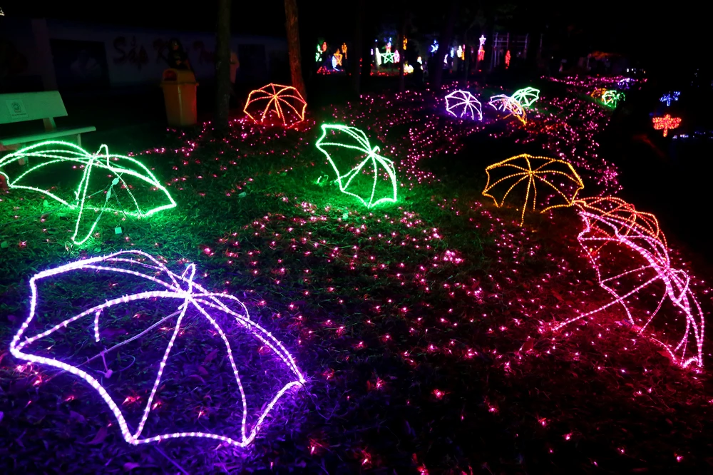 Những chiếc dù tạo hình bằng đèn LED đủ màu sắc.