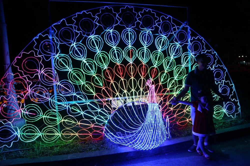 Chú chim công nhiều màu sắc qua hiệu ứng đèn LED.