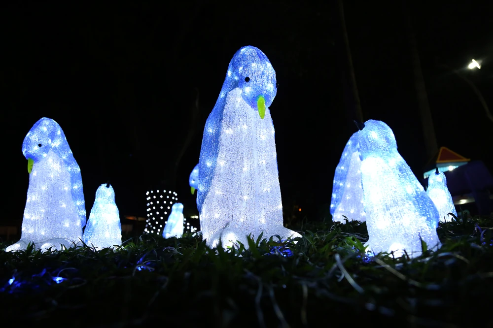 Những chú chim cánh cụt sáng bừng trong đêm nhờ hiệu ứng đèn LED.
