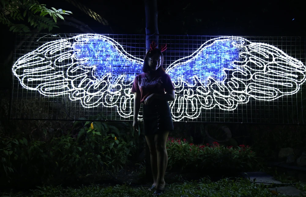 Chụp ảnh cùng đôi cánh thiên thần được tạo nên bởi hiệu ứng đèn LED.