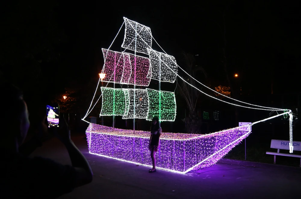 Mô hình thuyền được tạo nên bằng hiệu ứng đèn LED.