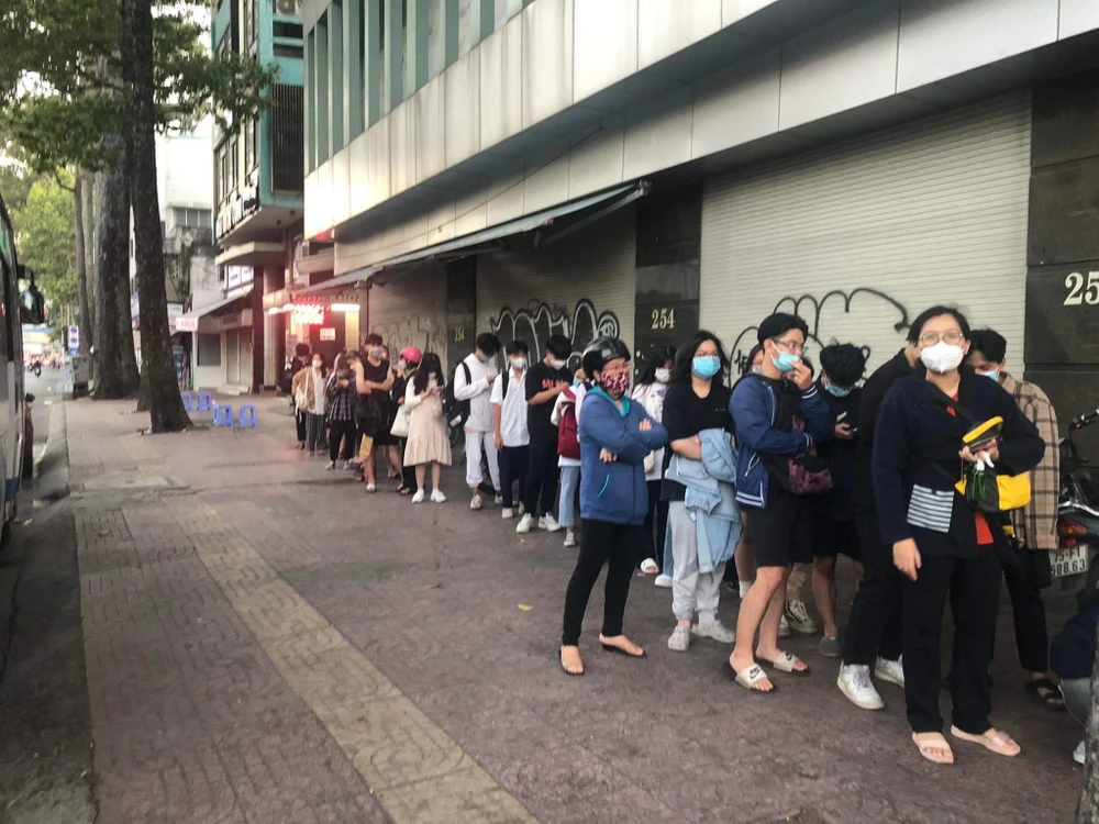 Xếp hàng từ 5 giờ sáng tại Chi nhánh nhà xuất bản Kim Đồng trên đường Cống Quỳnh, quận 1. ảnh: CTV