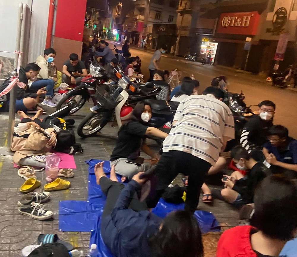 Nằm ngồi la liệt chờ nhận phiếu mua sách tại Fahasa Tân Định. Ảnh: BM