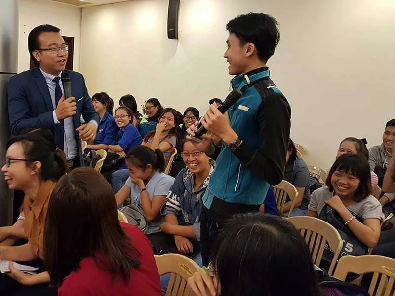 Một sinh viên trao đổi với ThS Đào Lê Hòa An về chuyện sống ảo của các bạn trẻ. Ảnh: HỒNG MINH