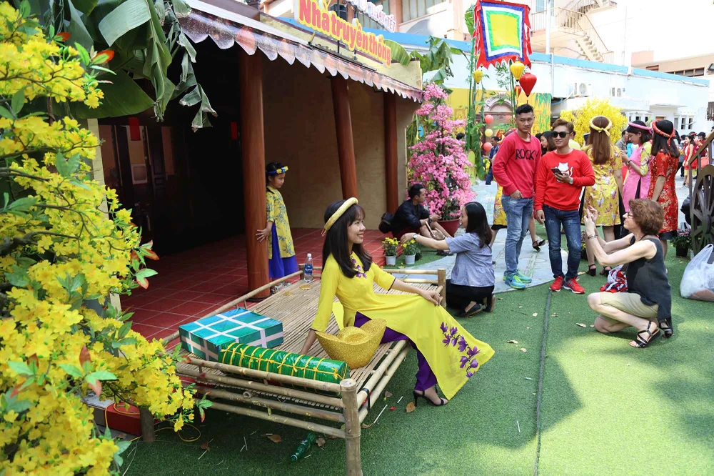Không gian thu nhỏ của một ngôi nhà truyền thống, đặt trong khuôn viên nhà văn hóa Thanh Niên cho mọi người đến chụp ảnh.