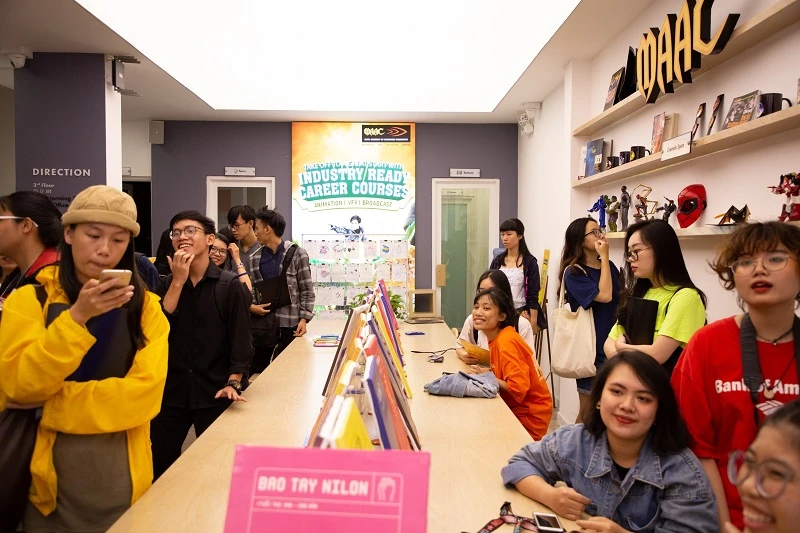 Từ sáng sớm đã có rất đông các bạn trẻ đến tham quan triển lãm, tạo nên không khí thật sôi động tại Học viện MAAC.